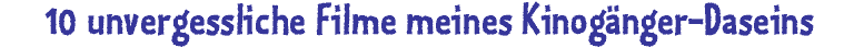 "10 unvergessliche Filme" klingt ein bisschen blöd, aber "die besten" wäre falsch gewesen. Jeden der unten aufgeführten Filme finde ich sehr gut. Doch darauf kommt es mir nicht an: Diese 10 Filme haben mich bewegt, beeindruckt, beeinflusst ... Die Reihenfolge der Aufzählung ist chronologisch, sie stellt keine Wertung dar. | |