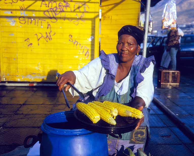 ... on the market in Cape Town: vendor of "Milie" (sweet corn) |
