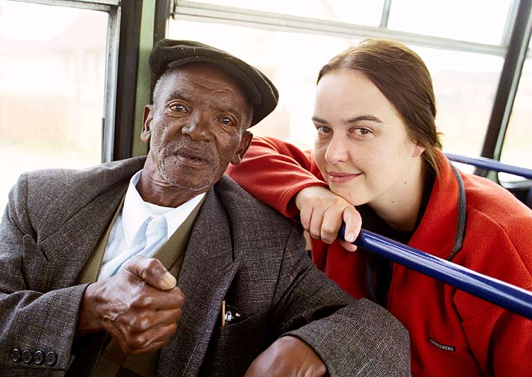 ... in the Golden Arrow bus to Khayelitsha Zizi and Anja |