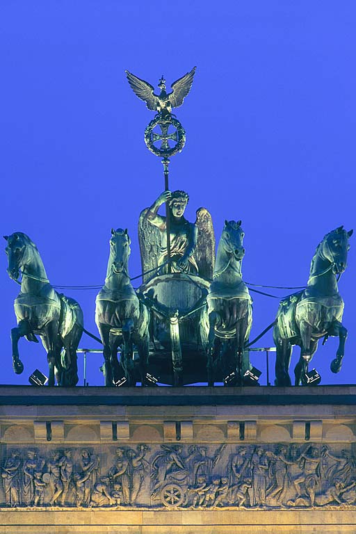 Ihr Völker der Welt! Schaut auf diese Stadt! forderte einst Berlins Bürgermeister Ernst Reuter. Einst war 1948 und Berlin lag noch in Trümmern. Heute, 54 Jahre später, ist Berlin Sitz der deutschen Amok-Regierung. Berlin ist die Stadt, in der jeder 4. Beamte fürs Nichtstun Geld bekommt, die Stadt der höchsten Schulden und unfreundlichsten Taxifahrer, sie ist auch die Stadt, in der am meisten Geld und Landschaft ver- und umgebaut wird. Neuester Coup: Das 1788-91 erstmalig erbaute Brandenburger Tor ist wieder neu und kann unverhüllt besichtigt werden. Dass es Geschichte erlebt hat, sieht man ihm allerdings nicht mehr an. Mit seinen in Mauerwerk und Boden eingelassenen Halogen-Lämpchen sieht es noch alberner aus als seine halb so große Kopie im Phantasialand in Brühl bei Köln. Die Neubauten des Potsdamer Platzes versuchen gar nicht erst, sich dem Baustil vergangener Epochen anzupassen. Egal. Die Glaspaläste dort sehen immer noch besser aus als das Bundeskanzleramt ... |