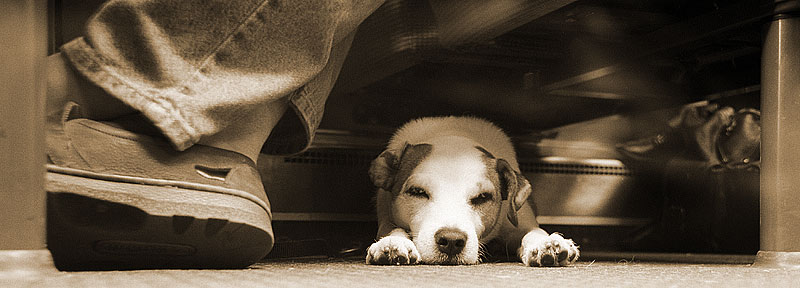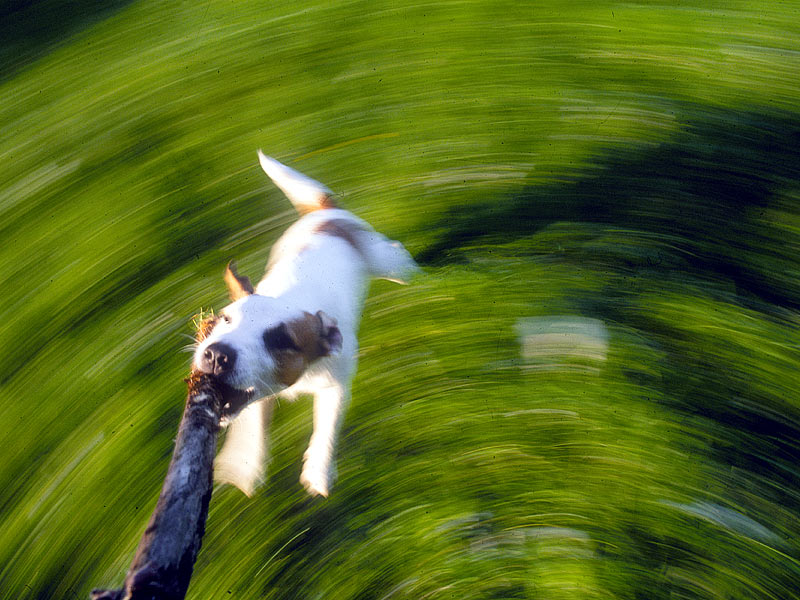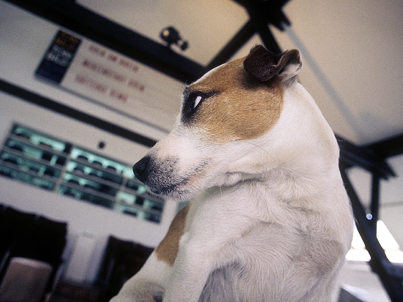 Und hier noch weitere Erinnerungen an Gonzo: 25.04.2006 von Frank Langmann: „Gooooooonzoooooooooooooooooo” schallte es im Chor durch die Hallen der „Ackerstraße”, wenn ein Eindringling durch die Türklingel angekündigt, lauthals bebellt wurde. Egal ob Postmann oder Kunde, jeder bekam eine ordentliche Bellpackung ab. Da war wirklich Getöse angesagt, aber Gonzo ließ sich ja gut erziehen. Mit ausgefeiltem Training brachten wir ihm bei, dass Kundenbebellen pfui sei. Hielt er Ruhe und Platz obwohl es klingelte, gab es Lob und Leckerchen. Das Resultat: Es klingelt, der Hund schleckt sich ums Maul, glotzt Beifall heischend aus der Wäsche, fiept und quietscht auf dem Hintern herum, um dann aber wenn sich die Tür öffnet mal richtig loszulegen... „Gooooooonzoooooooooooooooooo” gellte es dem gallopierenden Punkt am Horizont hinterher. Aber woher sollte dieser junge unerfahrene Terrible Jack Russell auch wissen, dass die Erde eine Scheibe ist ... „Gooooooonzoooooooooooooooooo” war der Schlachtruf zum Betriebssport. Dann hieß es Fußballspielen mit dem Tennisball. Auf dem glatten Hallenboden war schnelles Spiel gefordert, der Hund in der Mitte und wir drumherum. Klappte eine Abgabe oder ein Zuspiel nicht präzise, gewann natürlich der Hund, aber der war mit der Schnauze ja auch näher am Ball... „Gooooooonzoooooooooooooooooo” war als Medienhund natürlich mit einer Reihe von Modi programmiert. Und ich, der Mediensteuermann, verstand es, die Programme des Hundes abzurufen: Ein Knall einer Brötchentüte oder eines Luftballons genügten mir, um Gonzo augenblicklich auf Jagdmodus zu schalten: Ein fliegender Hundekorb und ein johlender und heulender Kondensstreifen mit vier Beinen dran. Auf dem glatten Hallenfliesen wurde er gelegentlich aus der Kurve getragen. Dann flog er auf die Schnauze. Besonders effektiv ließ sich der Jagdmodus mit einer Quietscheente aktivieren. Ein kleiner Quietscher und die Ente musste sich sehr gut verstecken. Aber mit seinem „Salzstreuer” hat Gonzo sie immer erschnüffelt... „Gooooooonzoooooooooooooooooo” feuerte ich ihn zu einem Wettrennen auf dem Deich von Westkapelle an. Mal schauen was er drauf hat dachte ich und trat in die Pedale wie blöd. Bei 45 km/h war Schluss bei ihm, viel schneller konnte ich jedoch auch nicht, aber so ein Hund hat halt vier Beine ... dafür hat er sich tags drauf beim Fußball am Strand revanchiert. Endlich Platz reichlich: Hund und Ball waren kaum zu fangen... Gooooooonzoooooooooooooooooo, weiß gar nicht wann ich dich zuletzt gesehen hab, war 2001 oder so. Fast 10 Jahre haben wir ein Studio geteilt und auch wenn du mir gelegentlich auf den Sack gegangen bist, waren es schöne Zeiten und unzählige Erlebnisse mit dir! „Gooooooonzoooooooooooooooooo” höre ich Andrea noch erschrocken rufen, als du auf den Hinterpfoten hüpfend dein bestes Stück fiepend mit den Vorderpfoten hieltest. Man pinkelt nicht gegen elektrische Weidezäune, das ist pfui! Auch im Hundehimmel! |